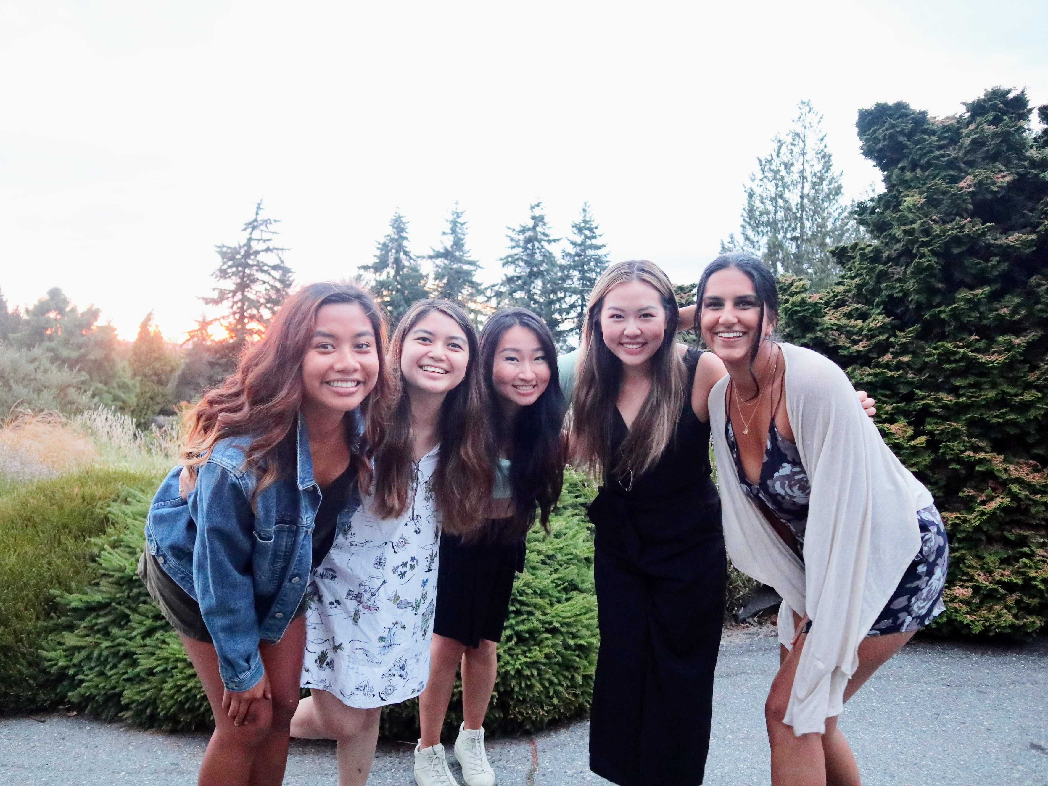 Kuang, centre, with her former classmates co-hosted a career development discussion for UBC Sauder students.